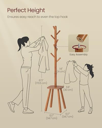 ?PERFECT HEIGHT, EASY ACCESS?At 67.1″ tall, this coat stand makes it simple to reach items on the top hook. The open shelf, just 18.1″ from the ground, lets you grab and store your belongings with ease