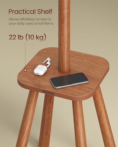 VASAGLE Coat Rack, Free Standing Coat Stand, Hall Coat Tree with 8 Hooks and Storage Shelf, 67.1 Inch Tall, for Coats, Hats, Bags, for Entryway, Hallway, Bedroom, Caramel Brown URCR033K01