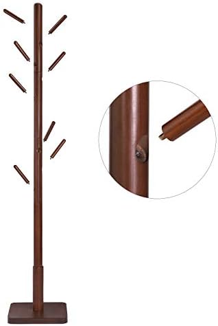 Color: Dark Walnut Material: Rubberwood Hooks and Main Pole, MDF (Medium Density Fiberboard) BaseProduct Size: 11.8″D x 11.8″W x 68.9″H (30 x 30 x 175 cm)Product Weight: 8.6 lb (3.9 kg)Max. Overall Static Load Capacity: 53 lb (24 kg)