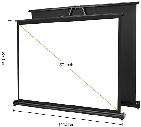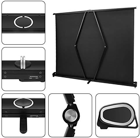 Yangers 50 inch portable aluminum projector screen with stand outdoor, retractable table desktop roll pull up for home cinema with foldable base support for outdoor travel office meeting