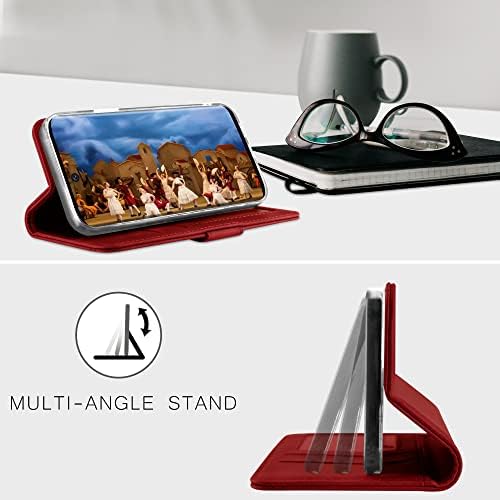 YATWIN Compatible with Samsung Galaxy S22 Ultra Case, Flip Wallet Leather Case with Screen Protector and Card Slot Kickstand Phone Cases Cover for Samsung S22 Ultra – Red