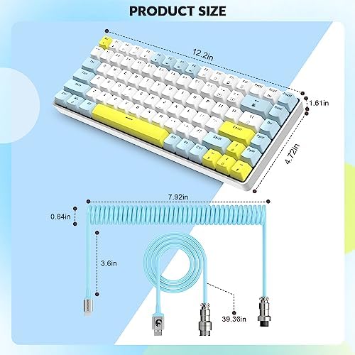 YINDIAO K84 75% Mechanical Gaming Keyboard,84 Keys TKL Layout Compact Keyboard,Hot Swappable,20 LED Backlit,Anti-ghosting,With Pro Coiled USB-C Cable,Ergonomic,Portable,for PC,Mac (Lemon,Red Switch) ?84 Keys Compact Layout & Portable Design?The lemon theme is Passionate,charming color.This 84 keys layout has separate arrow keys,and F1,F2,F3,…,F12 function keys,Which is more practical and convenient than 60%,65%